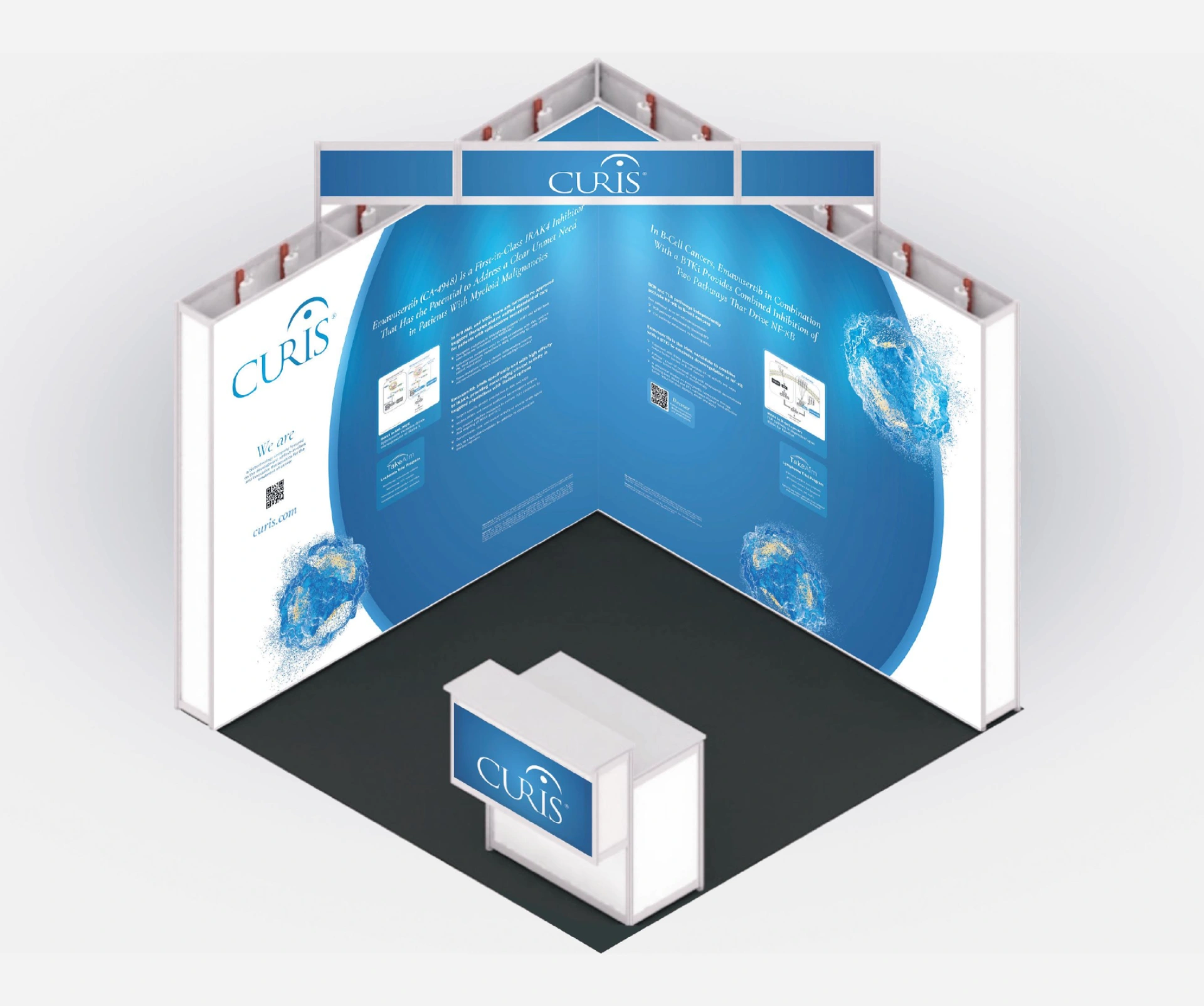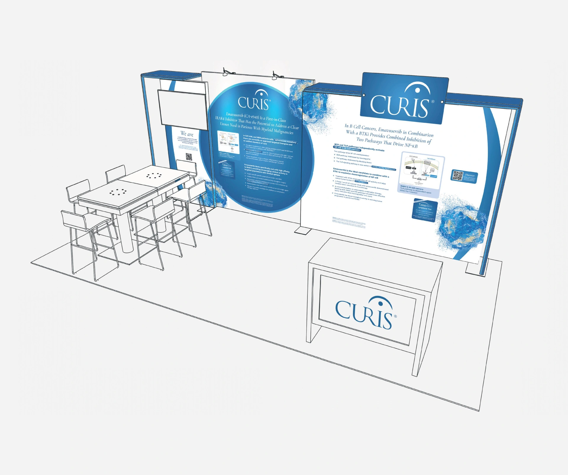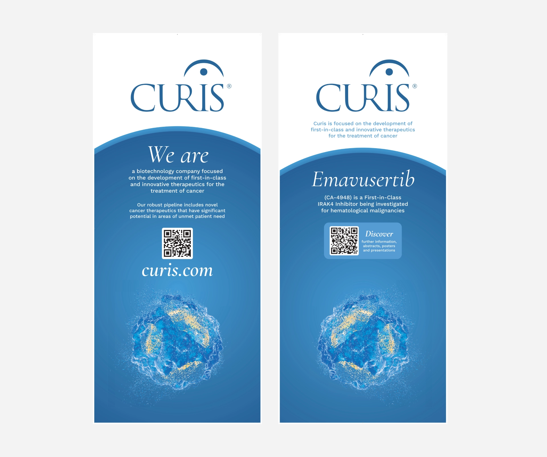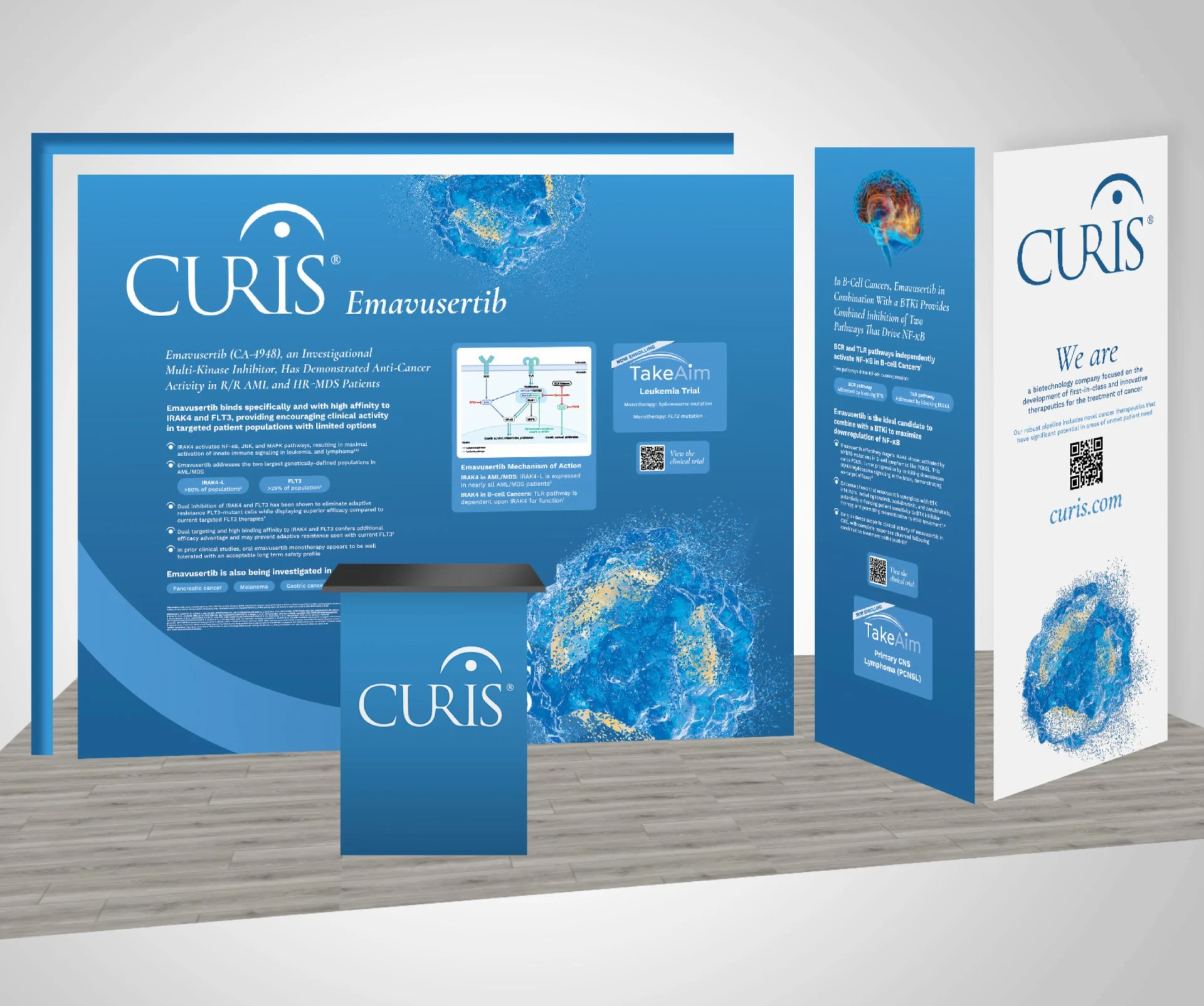 - Visually engaging and informative booth panels that effectively communicated the science behind Curis Pharma’s IRAK4/FLT3 inhibitor therapy.